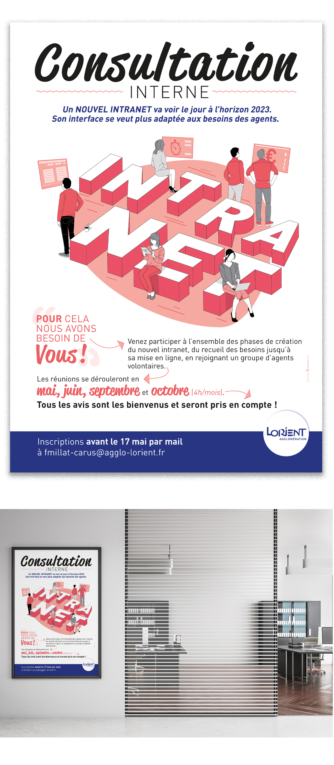Lorient Agglomération Lorient AgglomérationAffiche Intranet- Affichages interneAffiches A3 – Mise en page, illustration Précédent Suivant