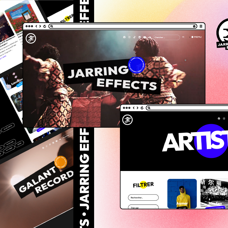 @jarringeffects est une maison musicale créé en 1995 qui a pour objectif de promouvoir des artistes talentueux et de leurs offrir une plateforme pour diffuser leur musique. Découvrez un catalogue d’artistes, un site complet, moderne avec des couleurs éclatantes. Retrouvez les prochaines pépites musicale dans un look professionnel, imaginatif et convivial 🔥