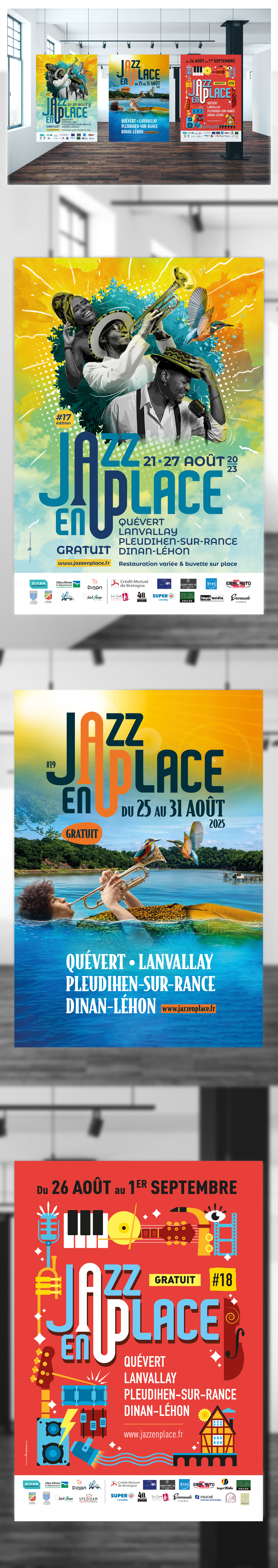 Festival Jazz en place - DINAN Création du visuel du festivalCréation originale – Déclinaison supports variés Création du programme Précédent Suivant