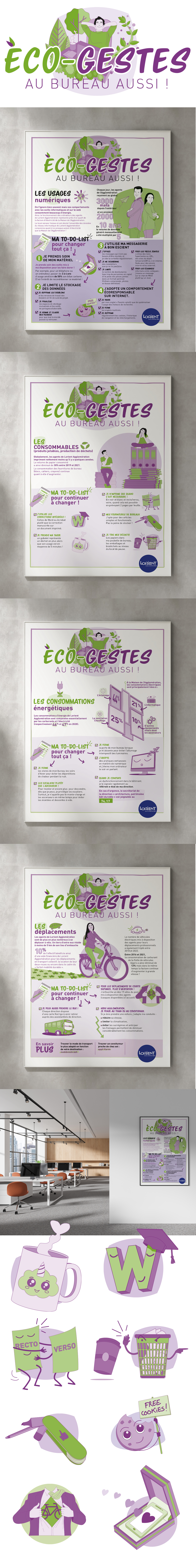 Eco-Gestes Lorient AgglomérationAffiche Eco-Geste – Affichages interne4 Affiches A3 – Mise en page, pictogrammes et illustrations Précédent Suivant